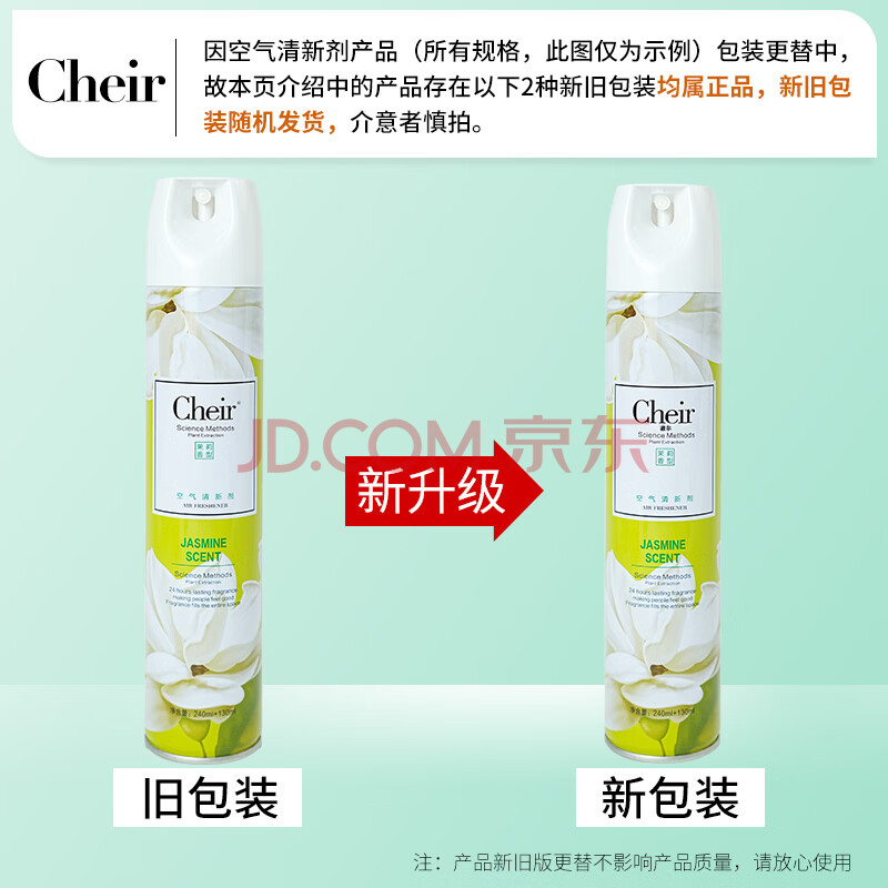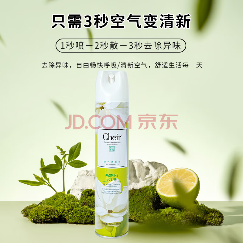 商品相册:CHEIR空气清新剂茉莉型香薰除异味家用卧室户外卫生间厕所喷雾剂370ml第1张/共9