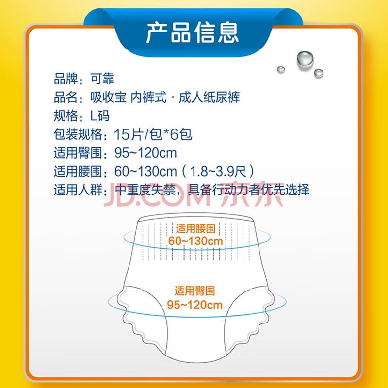 商品相册:可靠(COCO)吸收宝成人拉拉裤L90片(臀围95-120cm)内裤型纸尿裤尿不湿第