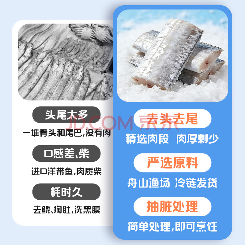商品相册:纯色本味冷冻舟山带鱼段(抽脏工艺)净重3斤烧烤地标产品刀鱼第