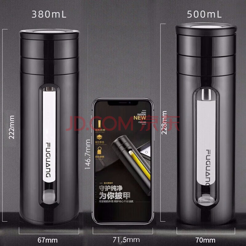 商品相册:富光大容量耐摔玻璃杯 商务男士双层水杯塑玻泡茶杯茶水分离杯子第
