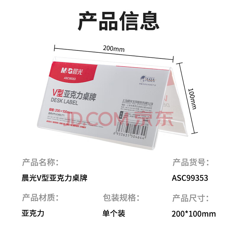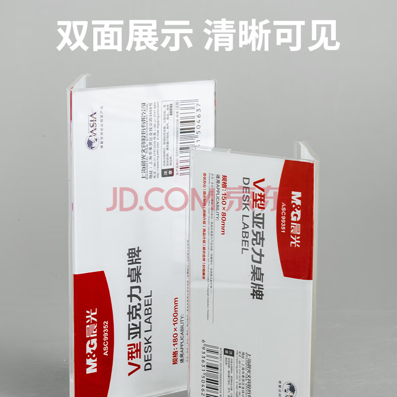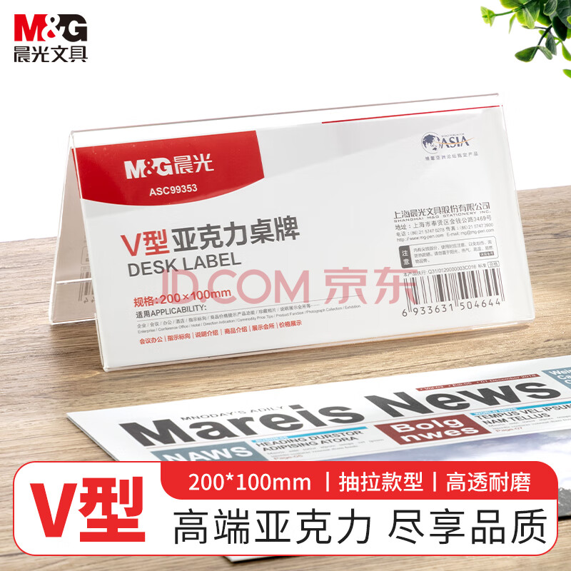 商品相册:晨光(M&G)V型台卡 亚克力桌牌展示牌席卡壳立牌200*100mm 台签会议席位卡 座位牌广告展示牌 单个装ASC99353第1张/共6