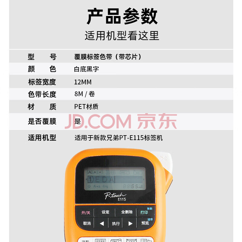 商品相册:V4INK T2e-Z231 适用兄弟PT-E115标签纸打印机标签带白底黑字标签色带 12mm T2e-231升级版第