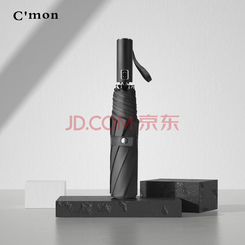 商品相册:C'mon 全自动晴雨伞三折遮阳伞太阳伞女防紫外线男士商务伞 黑胶黑色第