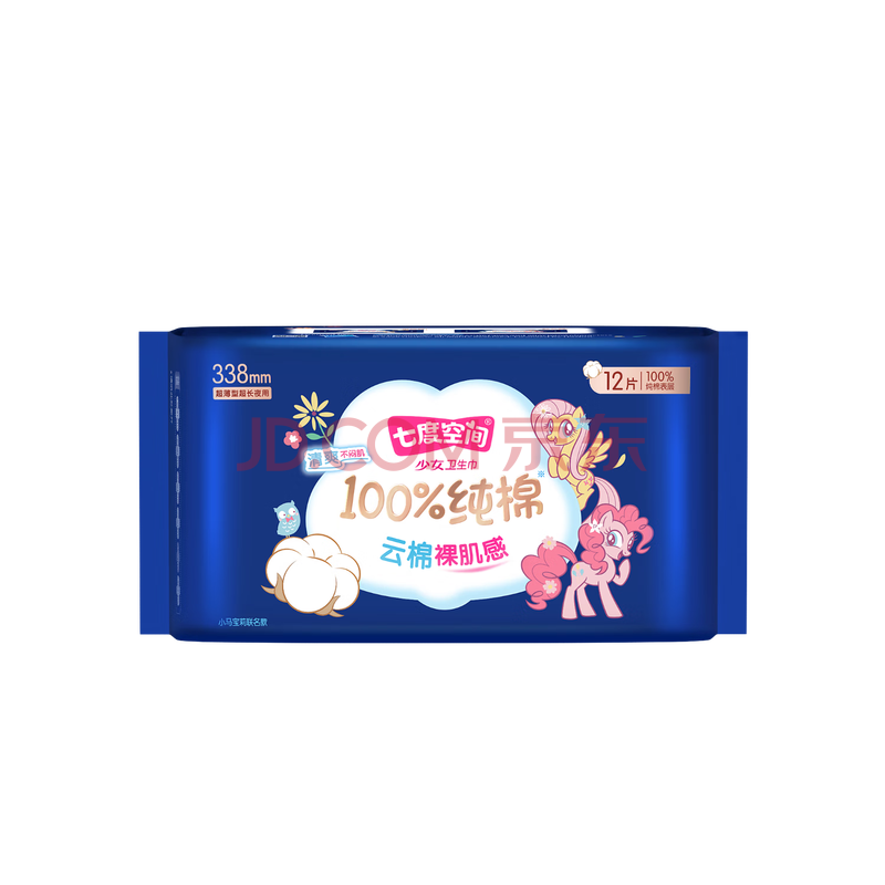 商品相册:七度空间少女超薄透气100%纯棉亲肤超长夜用卫生巾338mm12片【新国标认证第