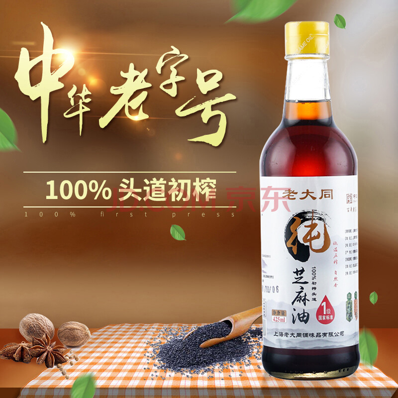 商品相册:老大同 纯芝麻油香油食用油香油油碟凉拌调料芝麻香油425ml 第