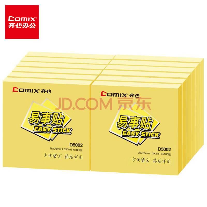商品相册:齐心(COMIX)【全网低价】黄色便利贴12本1200张 便签纸/便签本/便签贴/易事贴(76x76mm) 办公文具 D5002第