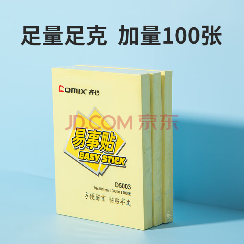 商品相册:齐心(COMIX)12本彩色便利贴粘性便签纸 76*101mm大号备忘自粘留言纸/记事贴 办公用品 D5003 黄第