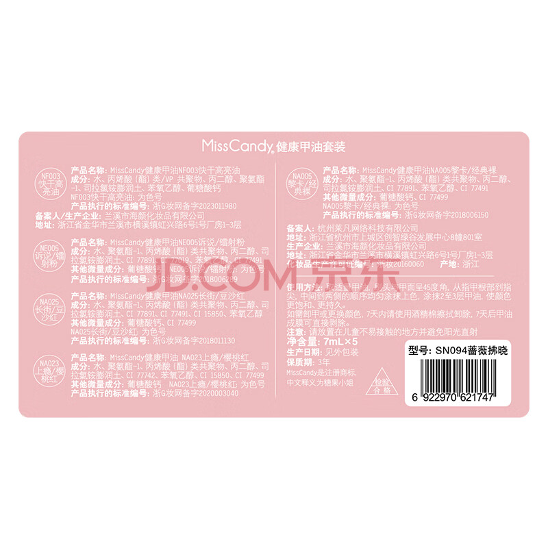 商品相册:Miss Candy美甲套装显白指甲油免烤快干持久可撕拉裸色礼物蔷薇拂晓SN094第