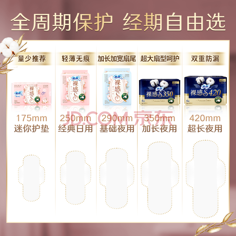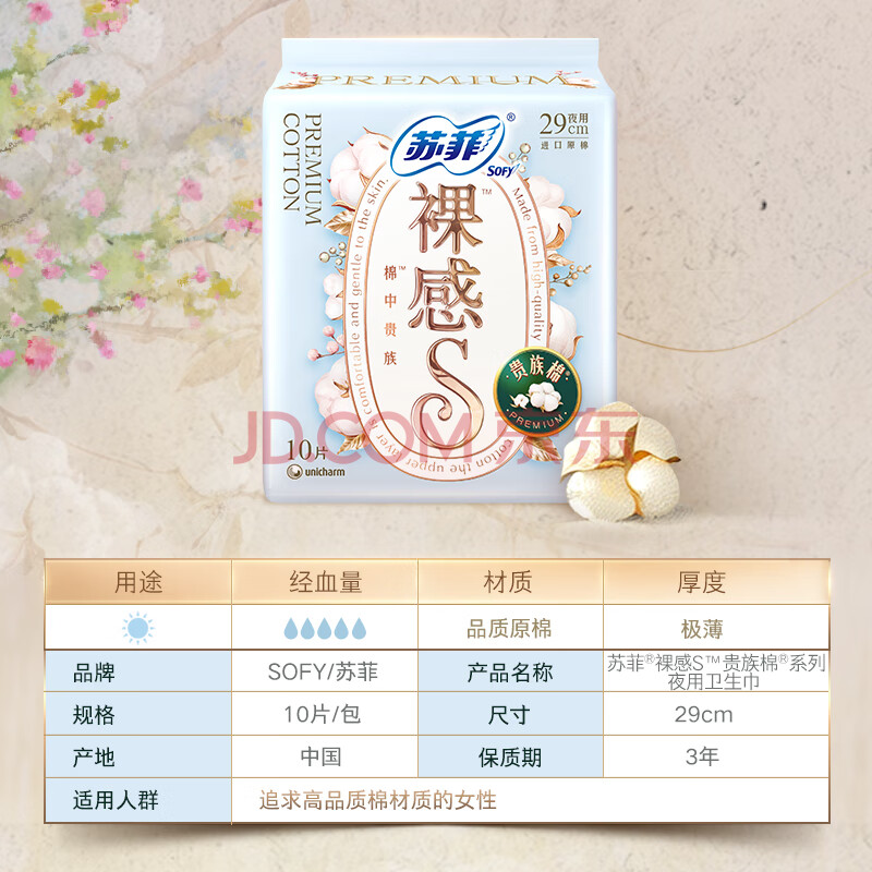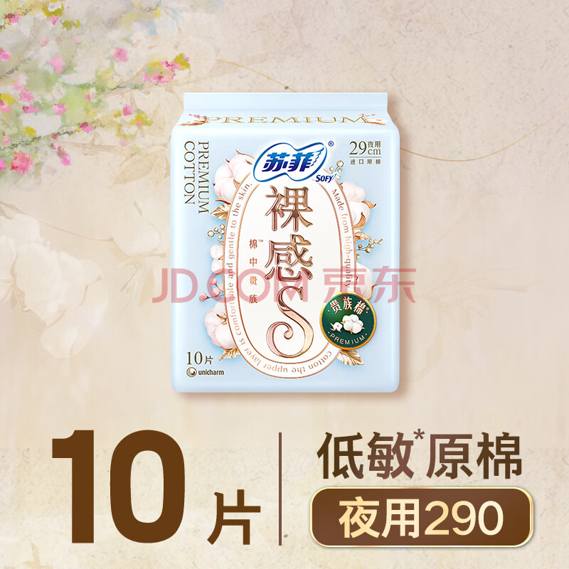 商品相册:苏菲裸感S贵族棉纯棉日夜用卫生巾29cm10片 透气低敏姨妈巾京东自营第