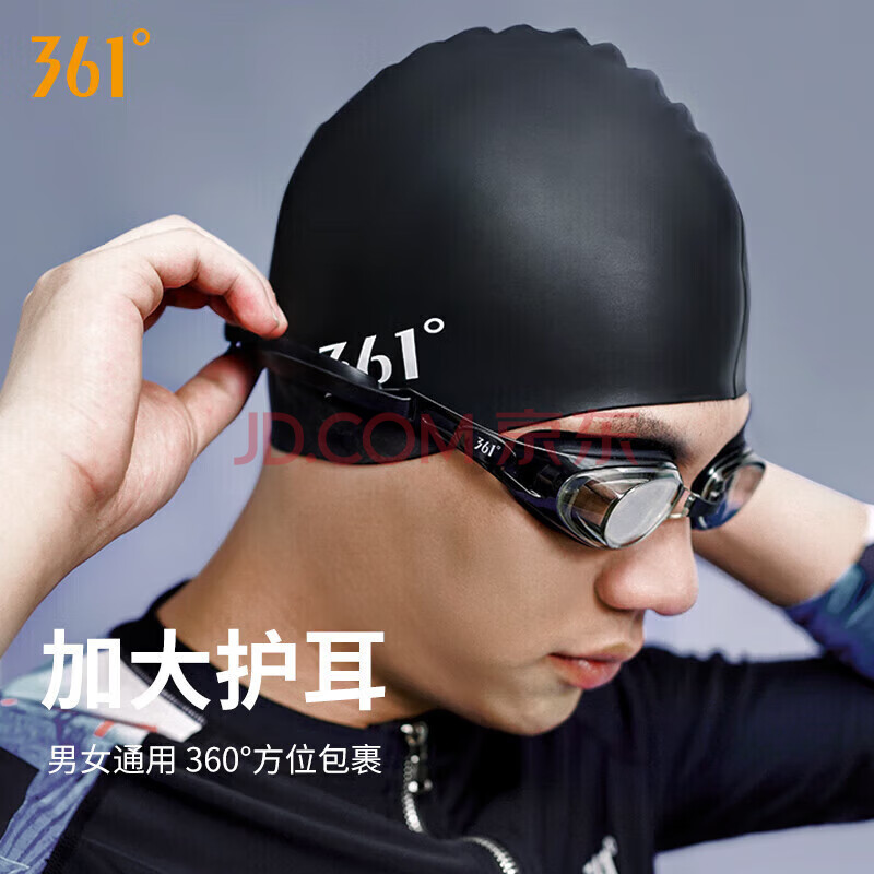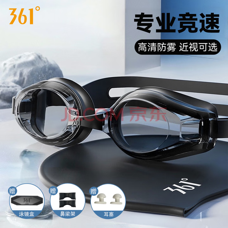 商品相册:361°泳镜泳帽套装游泳男女高清防雾泳镜泳帽套装专业训练近视可选第