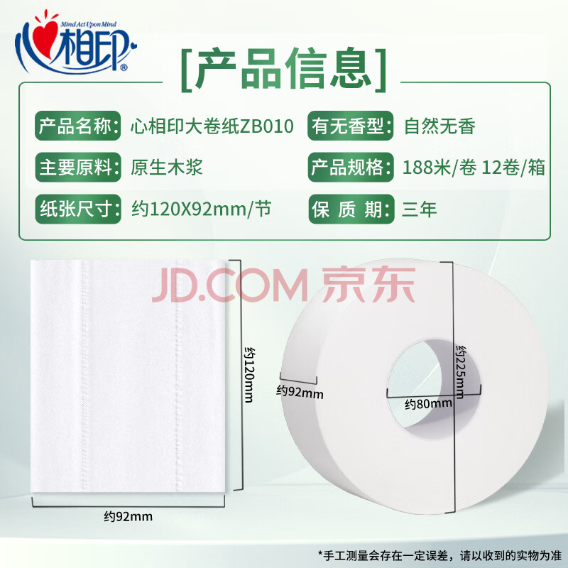 商品相册:心相印大卷纸有芯3层188米*12卷商用大盘纸卫生纸厕纸酒店宾馆 ZB010第