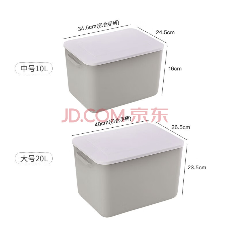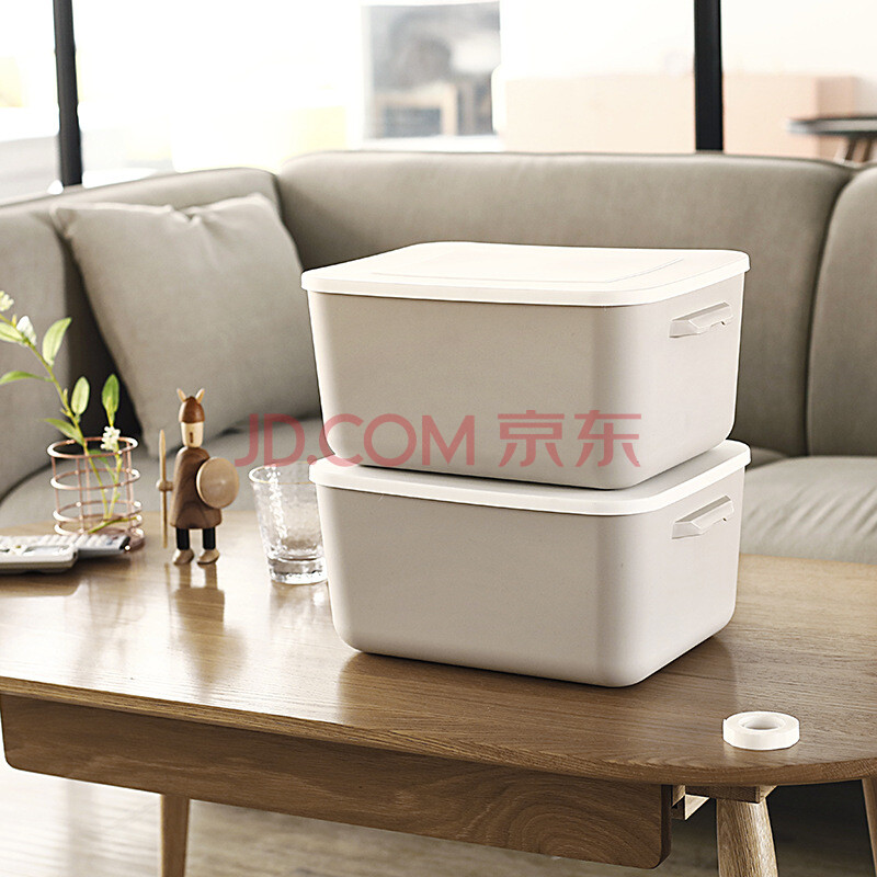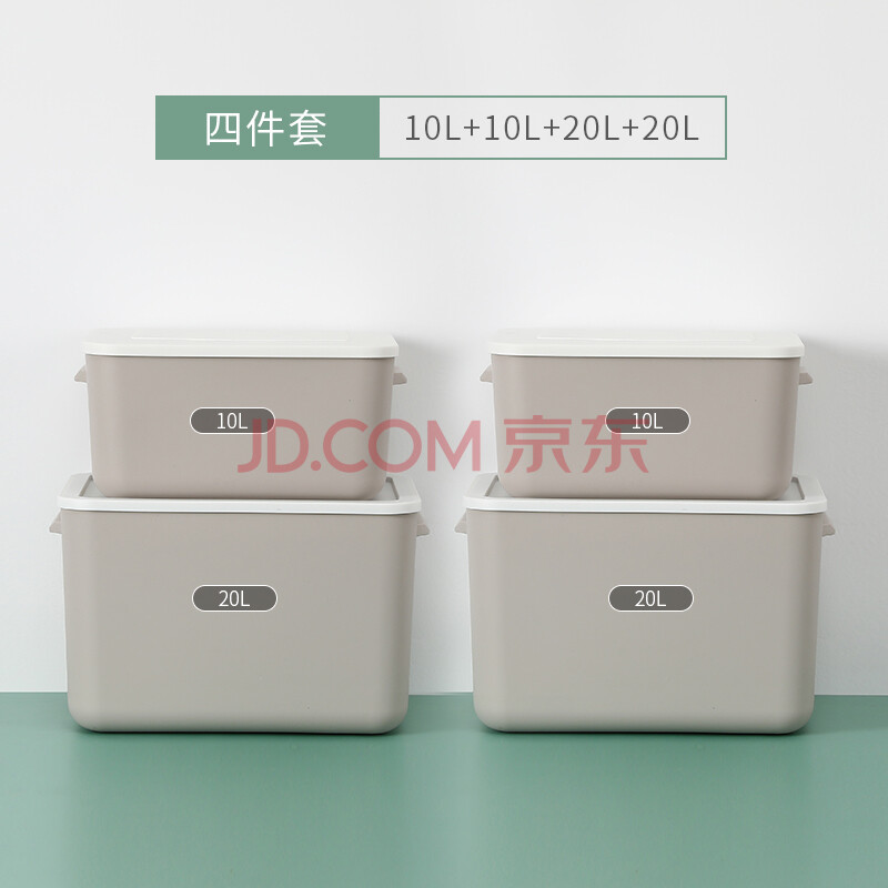 商品相册:侑家良品塑料衣物收纳箱杂物储物箱 卡其色20L*2个+10L*2个第
