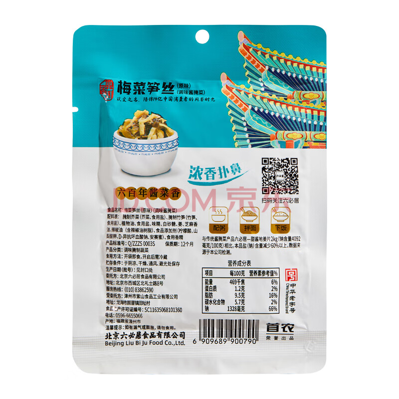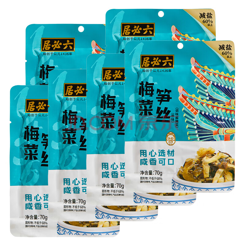 商品相册:六必居 梅菜笋丝 70g*6袋 下饭菜方便小菜 中华老字号第