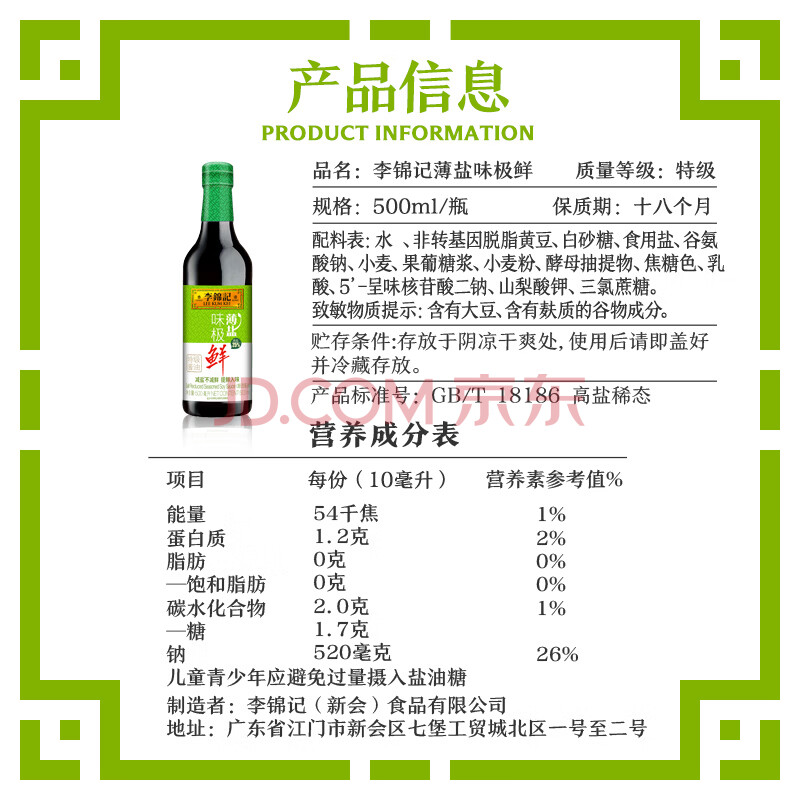 商品相册:李锦记 薄盐系列 薄盐味极鲜500ml【减盐 特级】高鲜不咸 鲜酱油生抽第