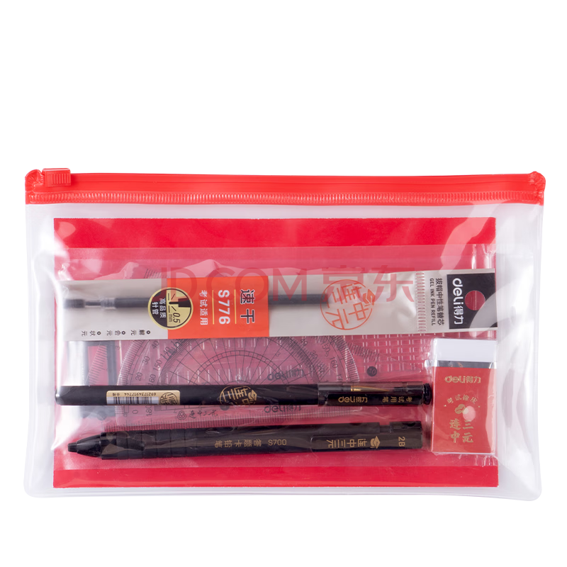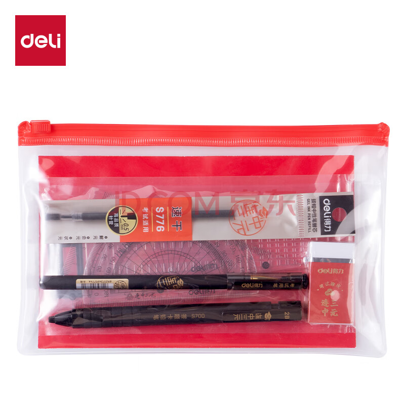 商品相册:得力连中三元考试套装9件套 套尺+中性笔+替芯+2B涂卡笔+橡皮+2B铅笔 考试中高考专用6669第