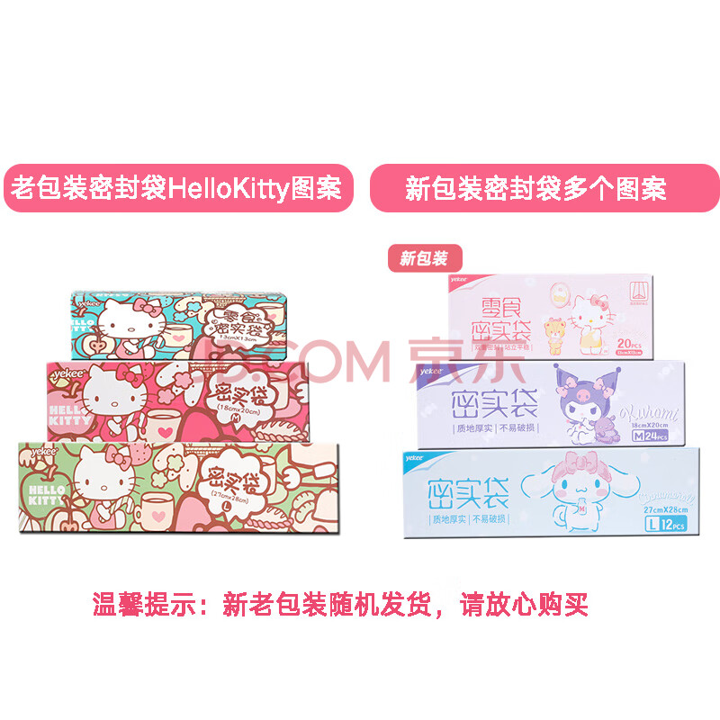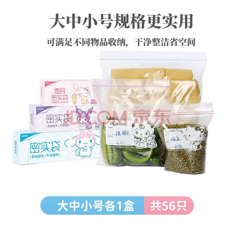 商品相册:宜洁(yekee)三丽鸥联名密封袋保鲜袋大中小组合56只装幼儿园收纳袋JD-7166第1张/共8