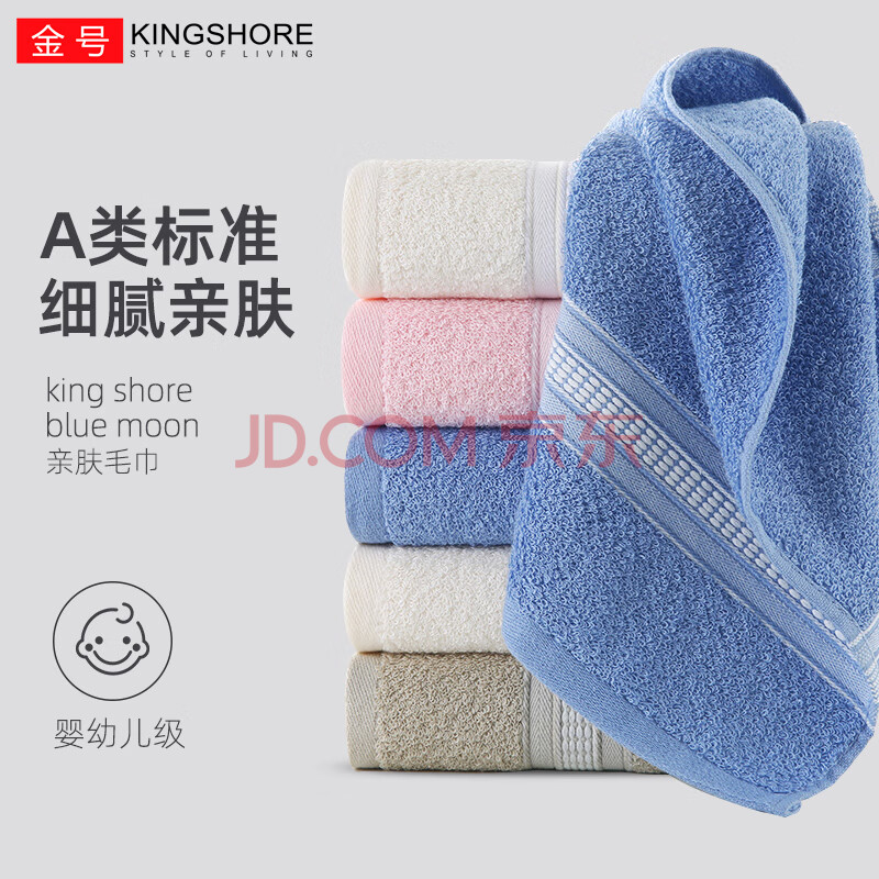 商品相册:金号纯棉毛巾柔软强吸水洗脸巾居家A类纯棉毛巾 2条装 蓝色/红色第