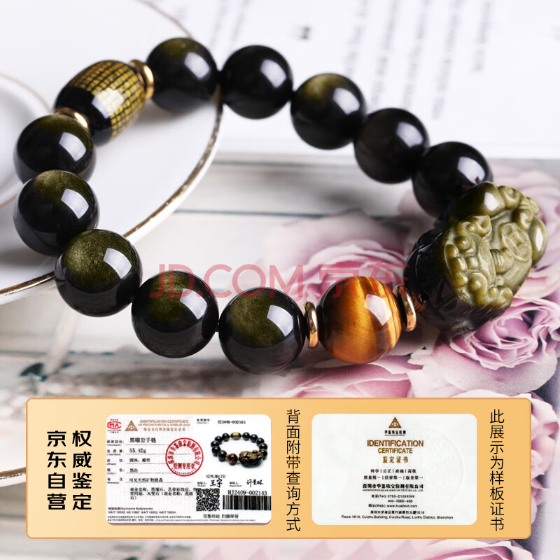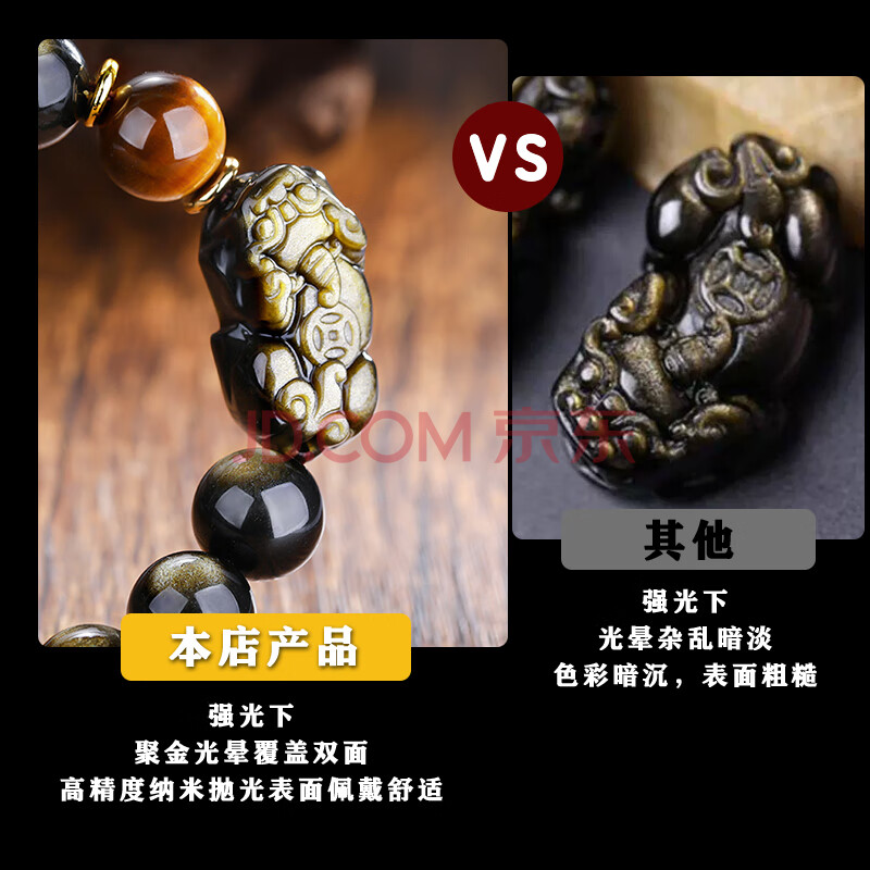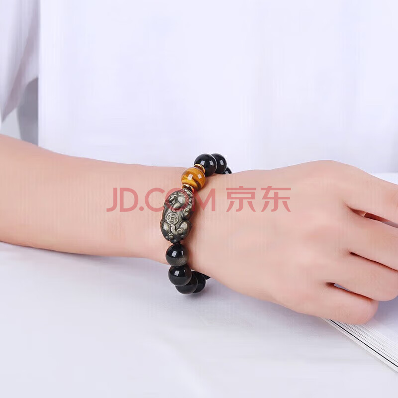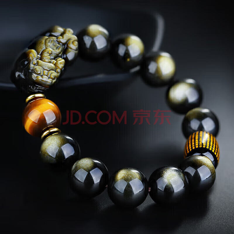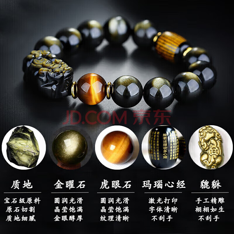 商品相册:石玥珠宝14mm金眼天然黑曜石手串虎眼石本命年貔貅水晶手链男女士款礼物第