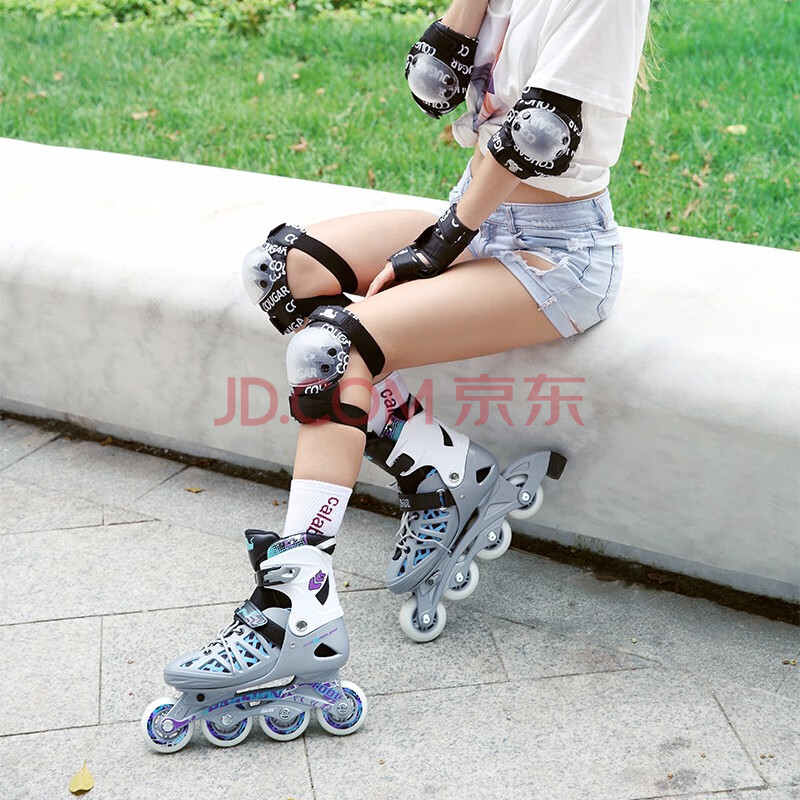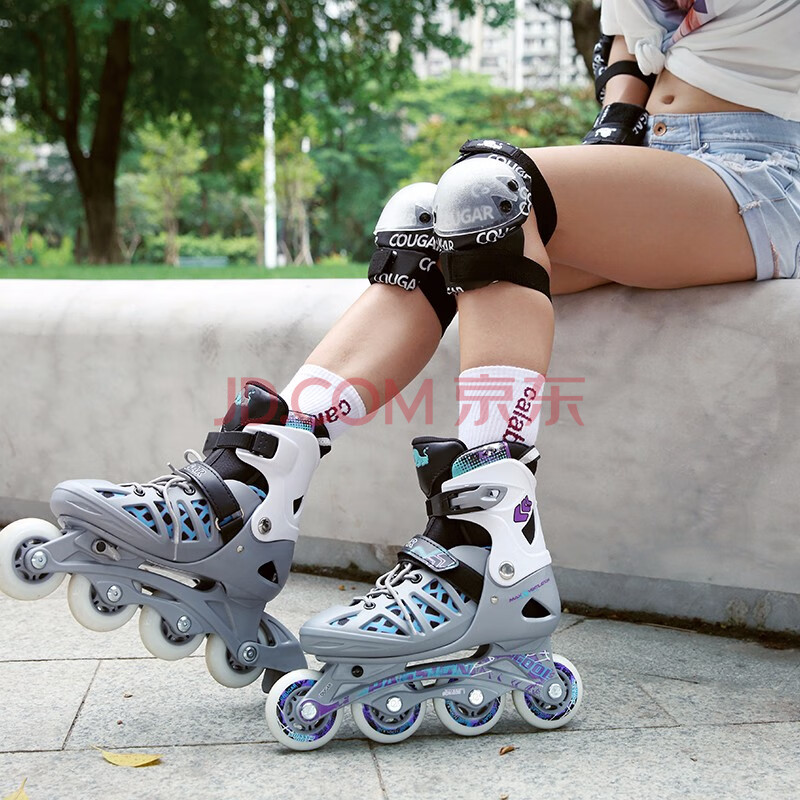 商品相册:美洲狮(COUGAR )成人可调码数轮滑鞋直排轮溜冰鞋 黑红M码第