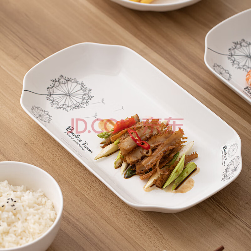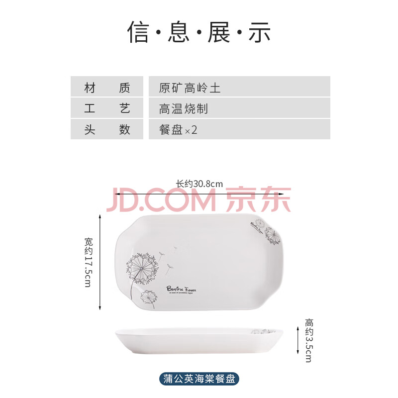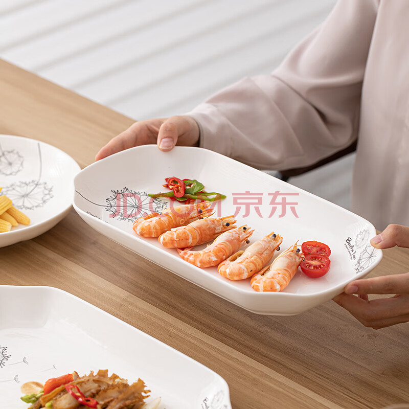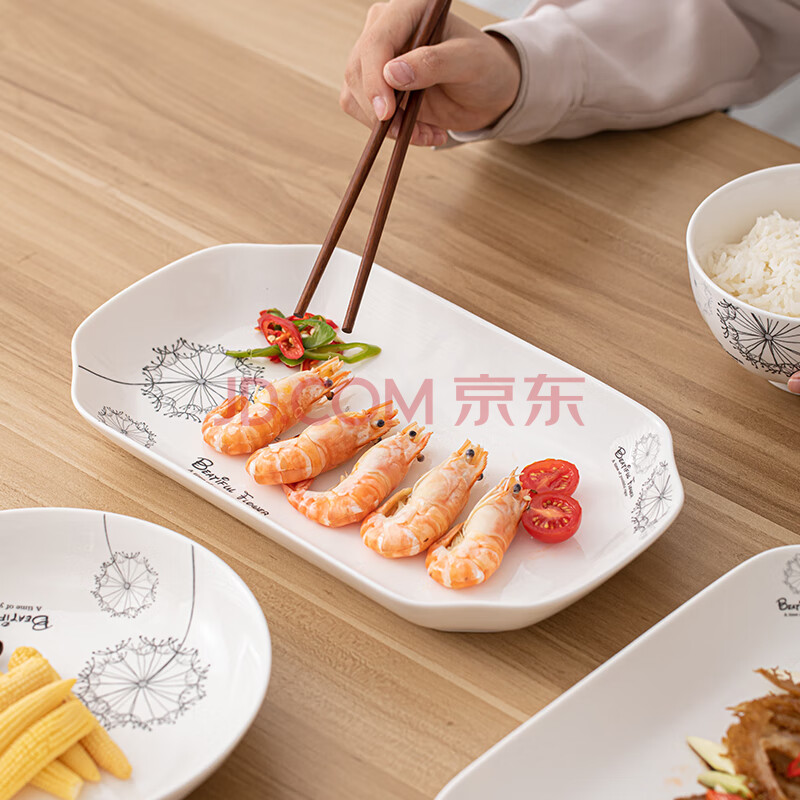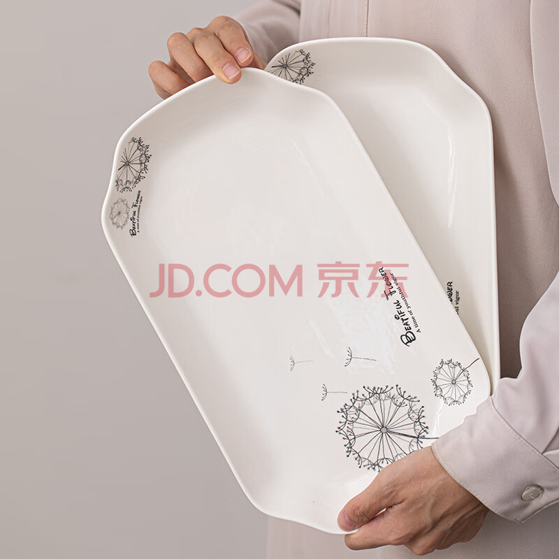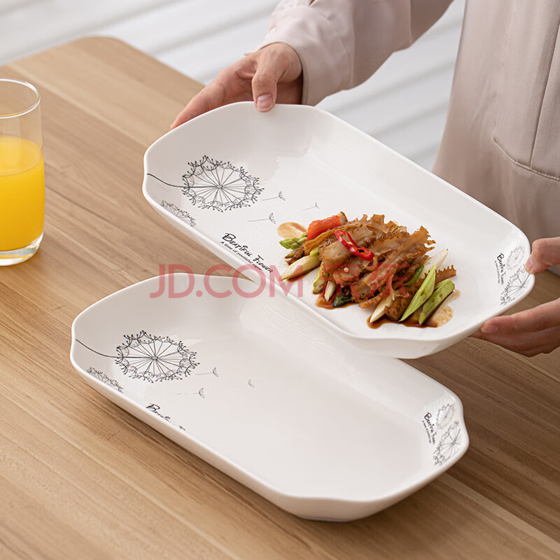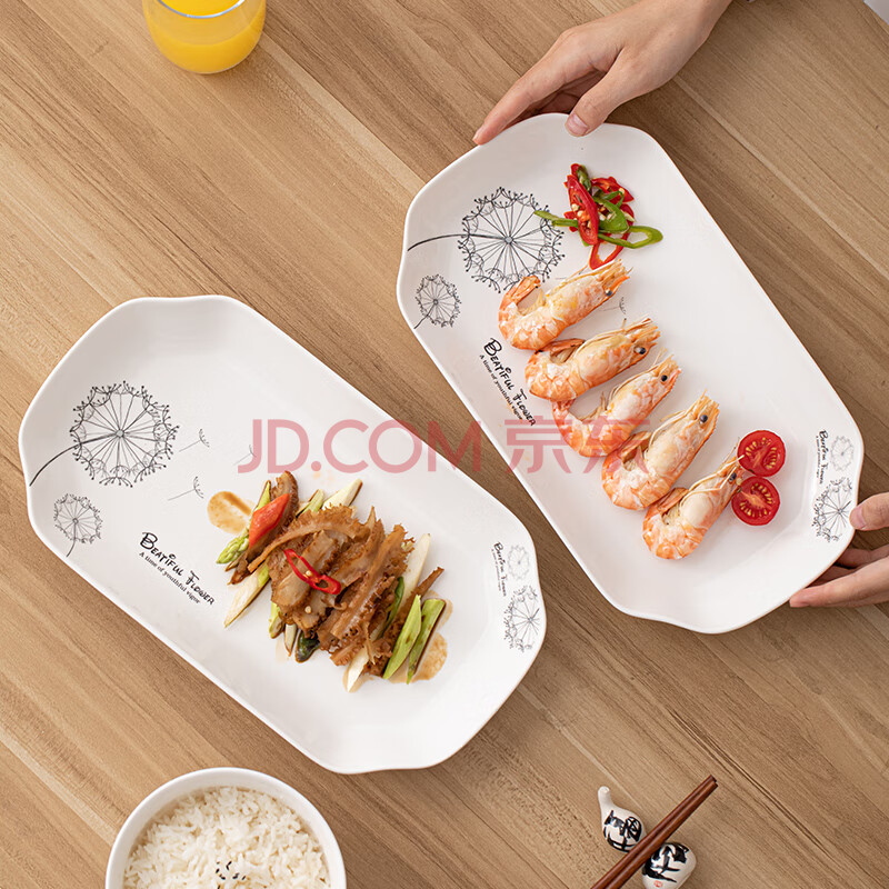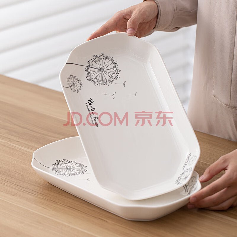 商品相册:苏氏陶瓷(SUSHI CERAMICS)鱼盘菜盘 蒲公英简约家用陶瓷盘12英寸切角盘子2个只装餐具第