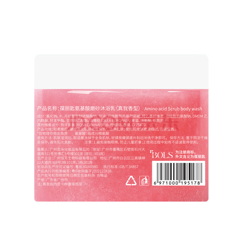 商品相册:葆丽匙(Bols)氨基酸身体磨砂膏350g 沐浴盐去角质鸡皮肤搓泥宝(真我香型)第
