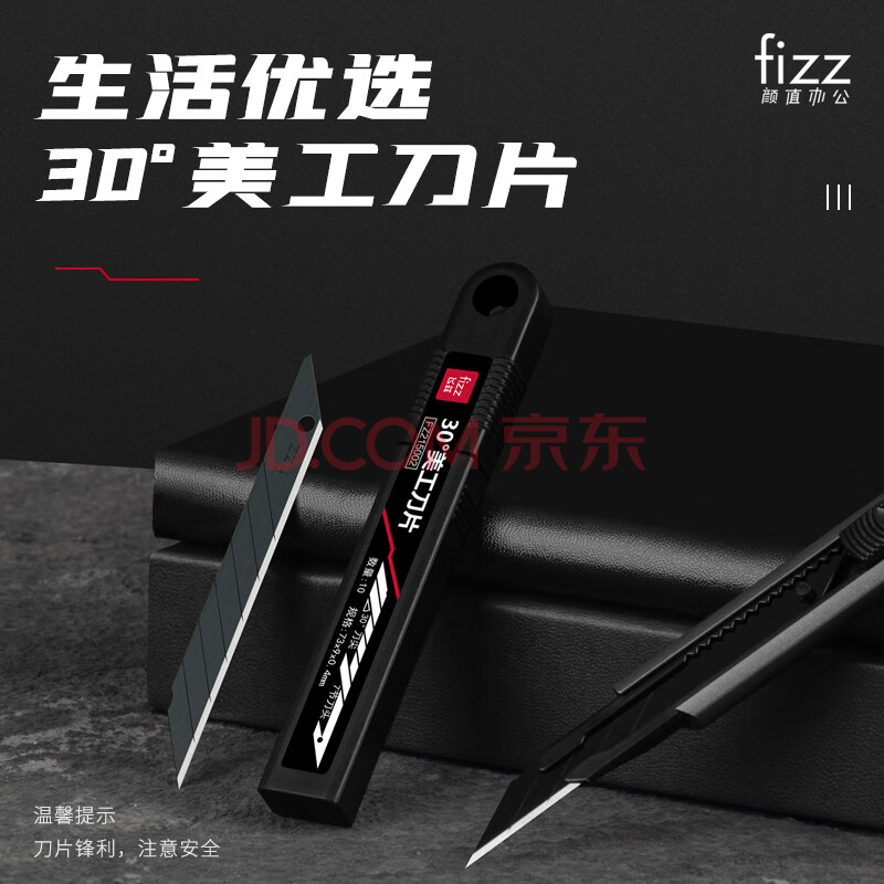 商品相册:飞兹(fizz)10片装9mm30°小号刀片 SK5精钢美工刀片/壁纸刀片/裁纸刀片 办公文具 FZ215002第