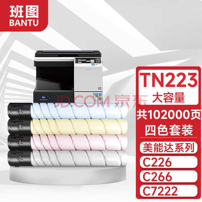 商品相册:班图适用柯尼卡美能达c226碳粉tn223粉盒bizhub C266 tn224 C7222 C256墨粉盒 震旦adc225墨盒 四色套装大容第