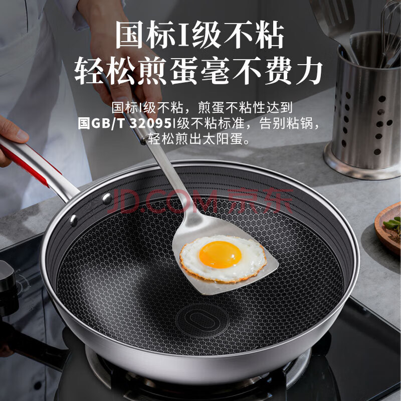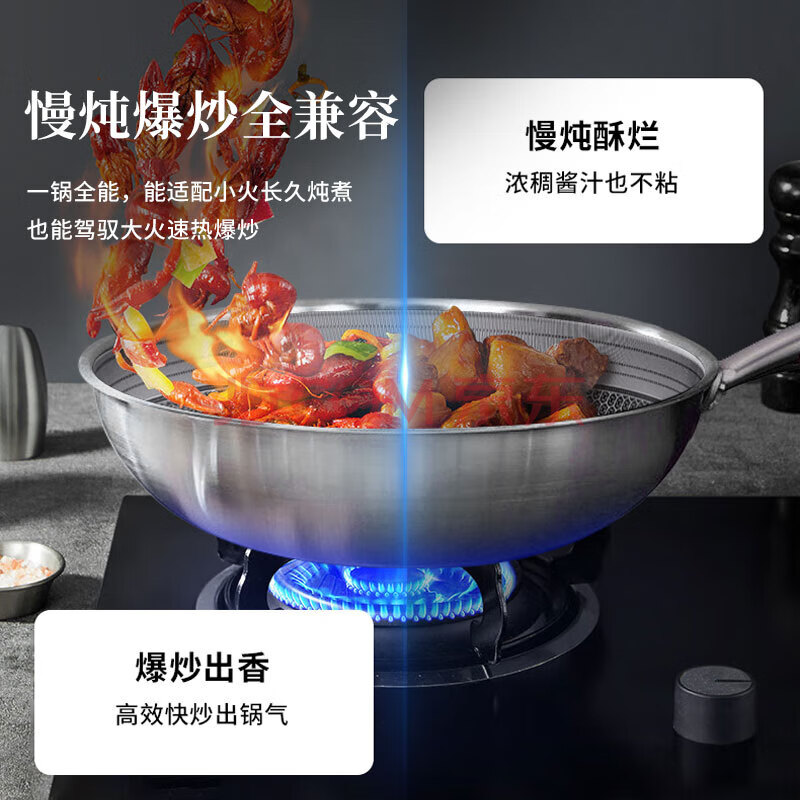 商品相册:康巴赫炒锅316L不锈钢炒菜锅少油烟不粘锅家用电磁炉燃气灶通用32cm第