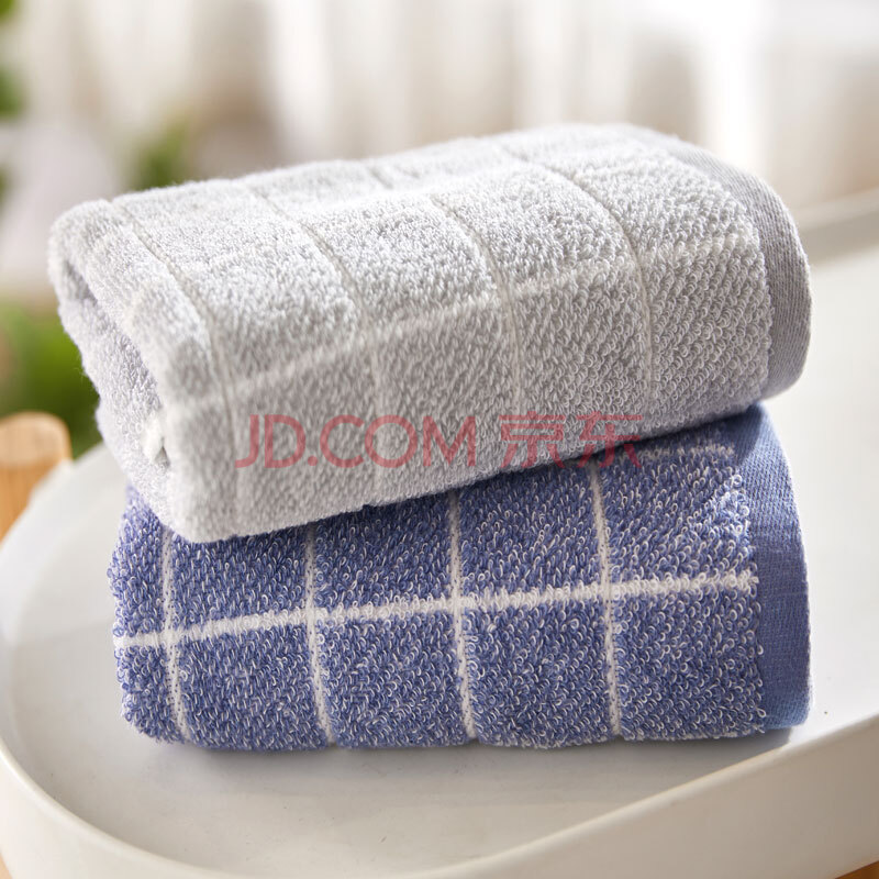 商品相册:洁丽雅(Grace)毛巾家纺 经典格纹系列新疆棉强吸水洗脸面巾 二条装 兰/灰第