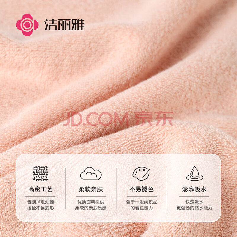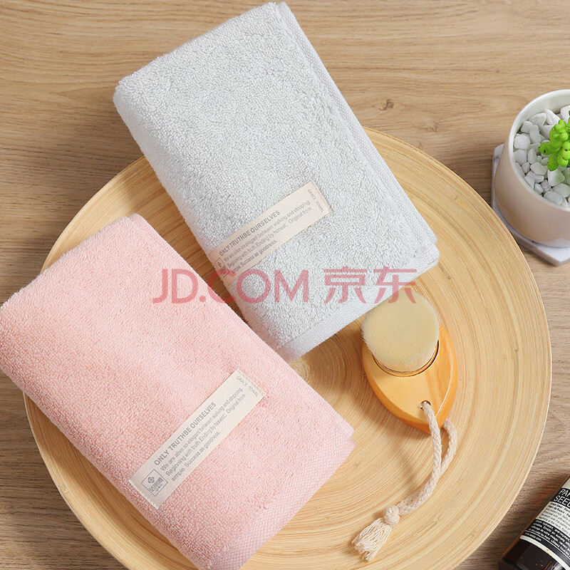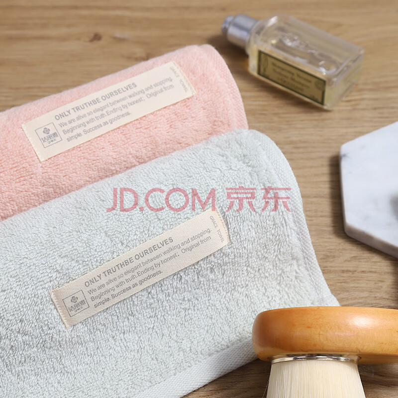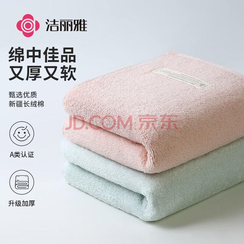 商品相册:洁丽雅(Grace)新疆长绒棉A类毛巾2条装 纯棉加厚柔软面巾吸水洗脸巾 樱粉+素绿第