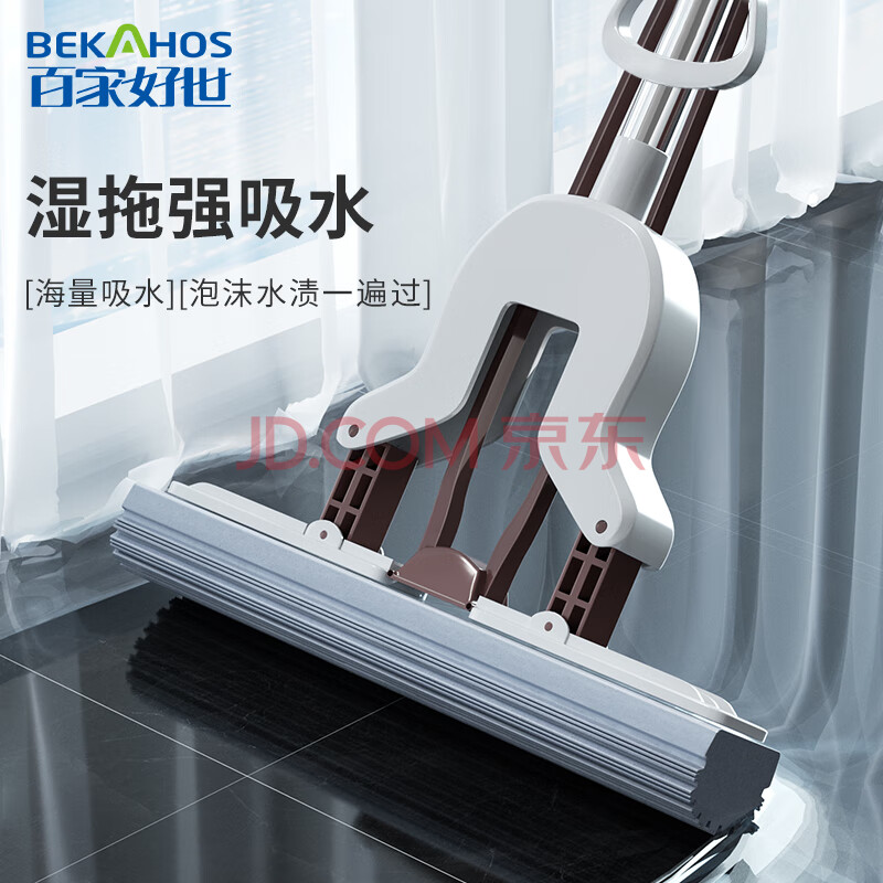 商品相册:百家好世胶棉拖把28cm2头对折挤水懒人海棉吸水家用一拖净免手洗2026第