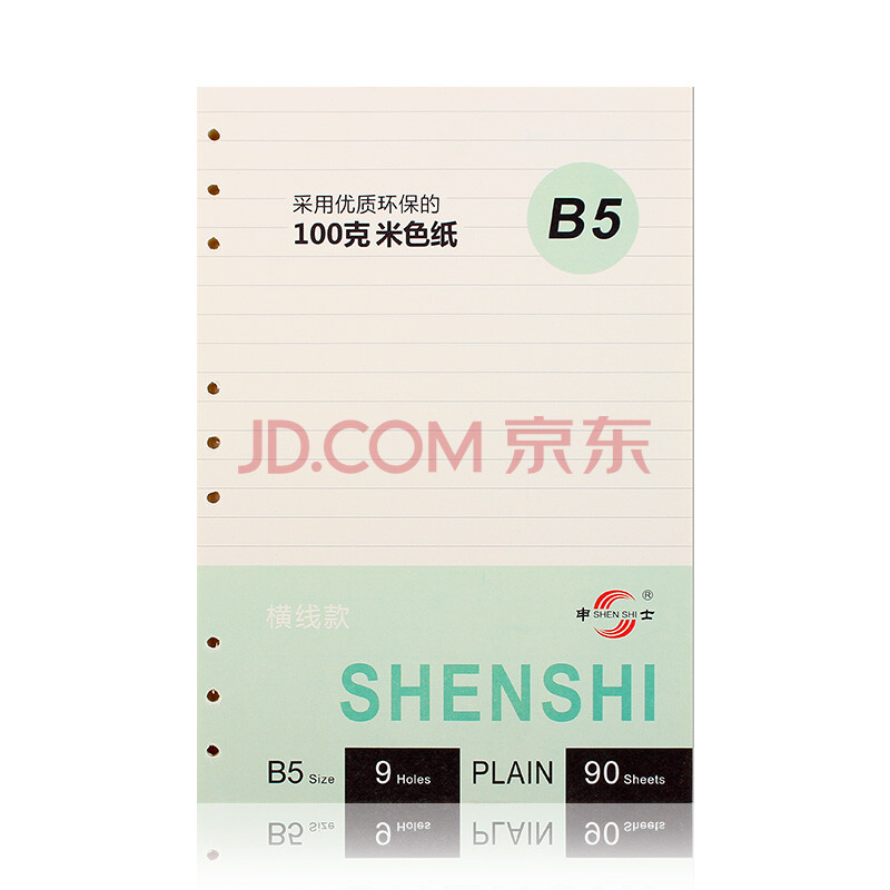 商品相册:申士(SHEN SHI)90张活页笔记本替芯 加厚100克米黄色纸 适用于9孔B5活页记事本子1本横线款J8018第