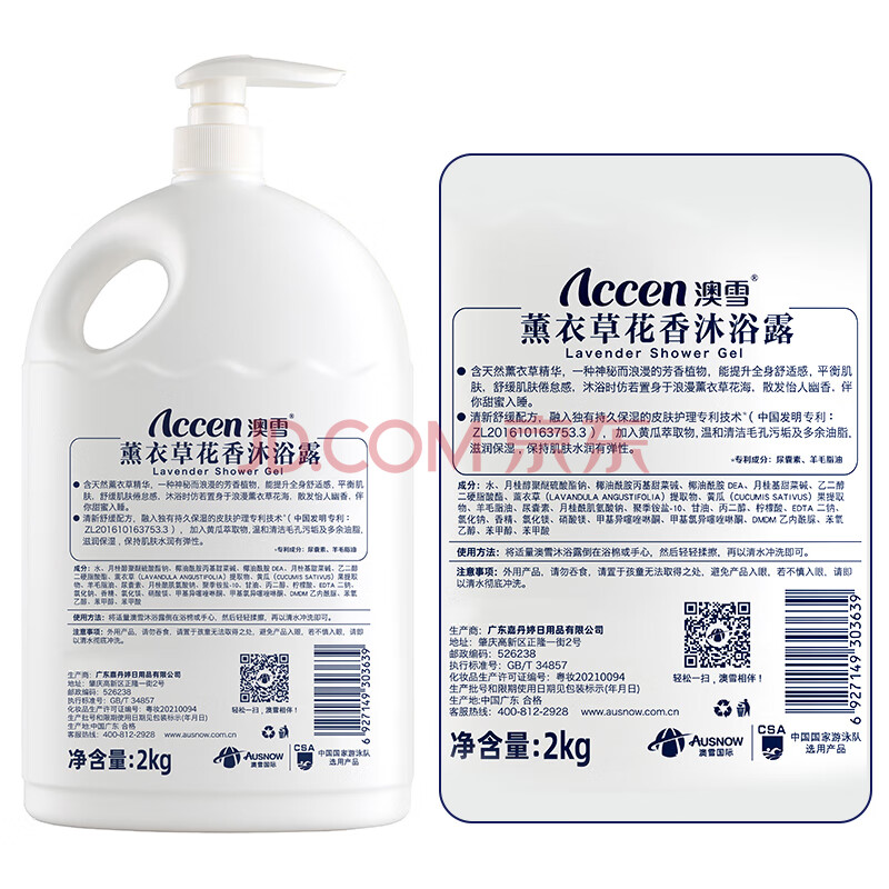 商品相册:澳雪(accen)薰衣草花香沐浴露2kg 持久留香沐浴乳第