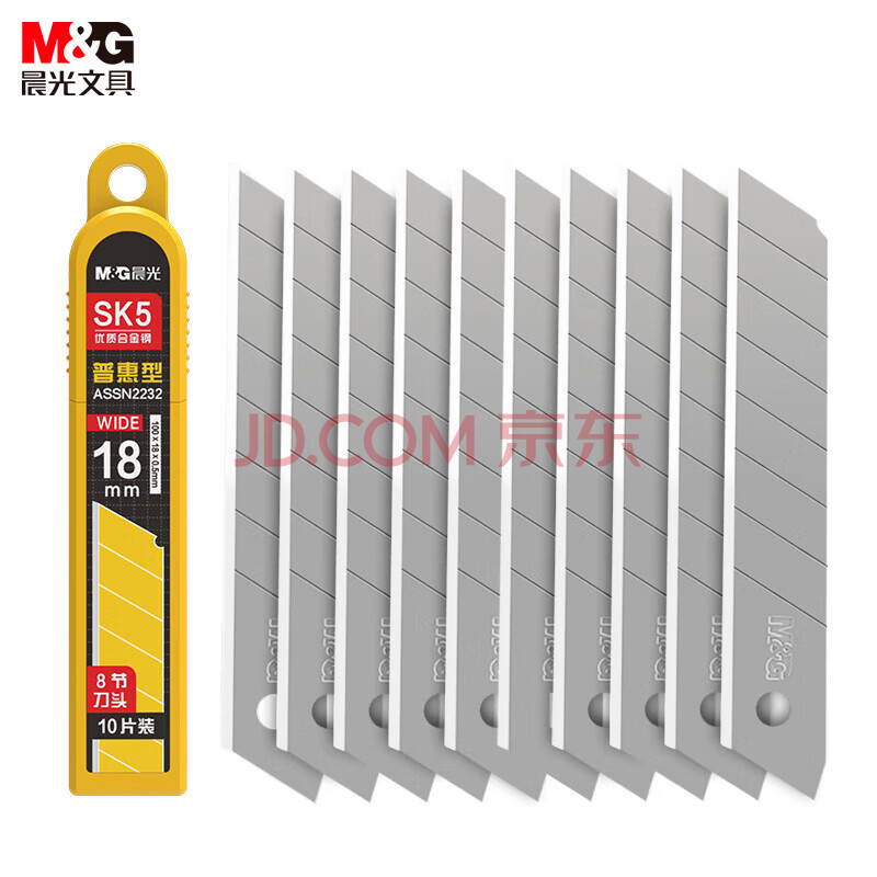 商品相册:晨光(M&G)18mm大号美工刀片 8刀头SK5合金钢刀片/替换刀片 办公用品 10片/盒 单盒装ASSN2232第