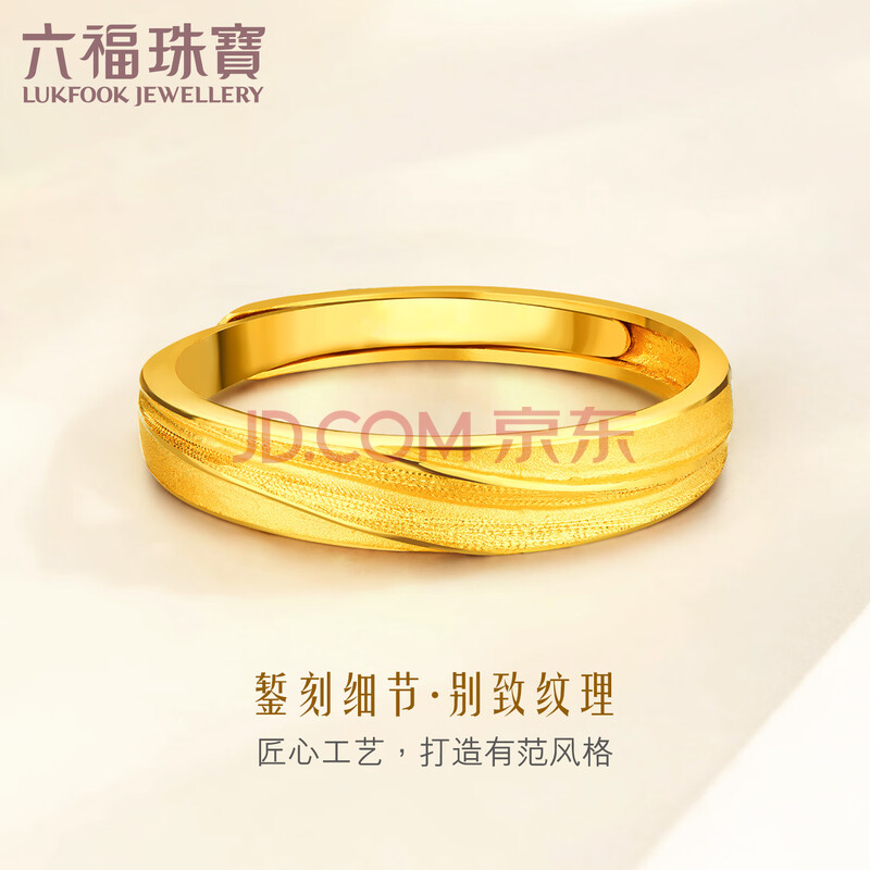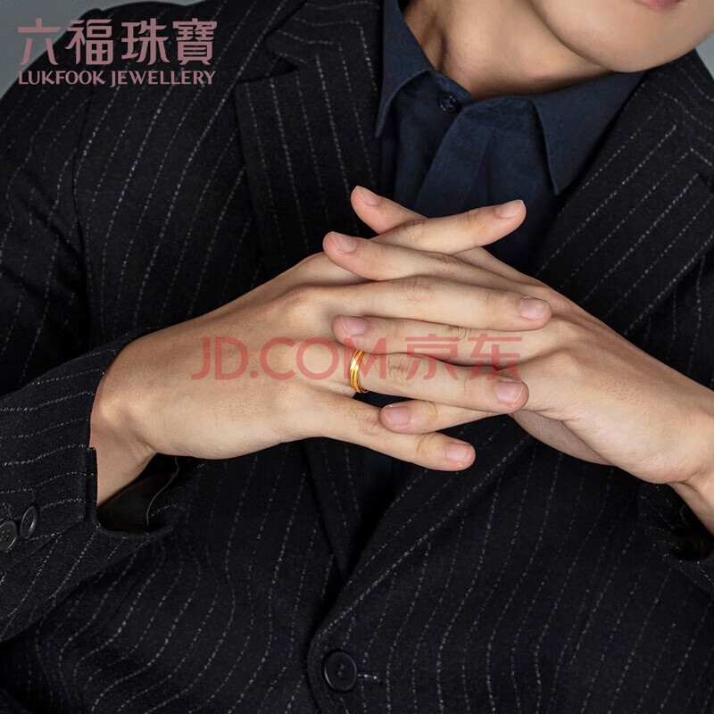 商品相册:六福珠宝 黄金戒指时光流转足金实心男士戒指 计价 约3.95克第