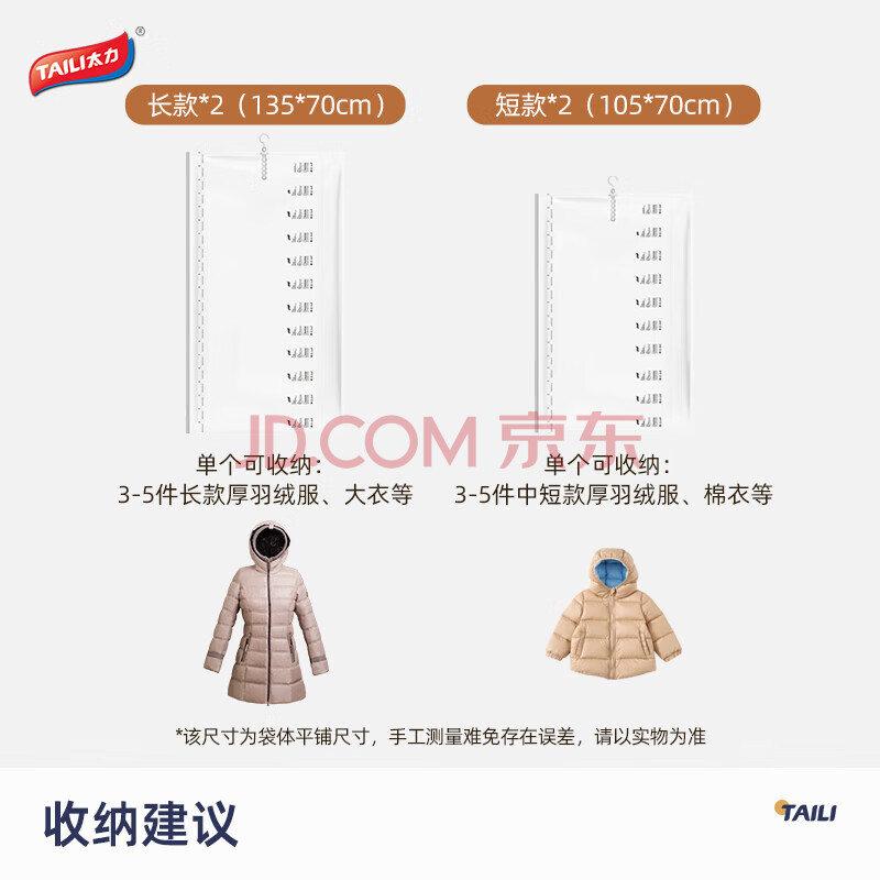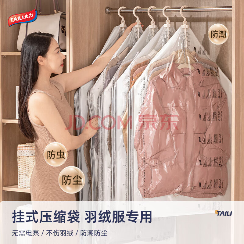 商品相册:太力羽绒服真空挂衣收纳袋衣服挂式压缩外套大衣西服防尘罩袋4件套第1张/共4