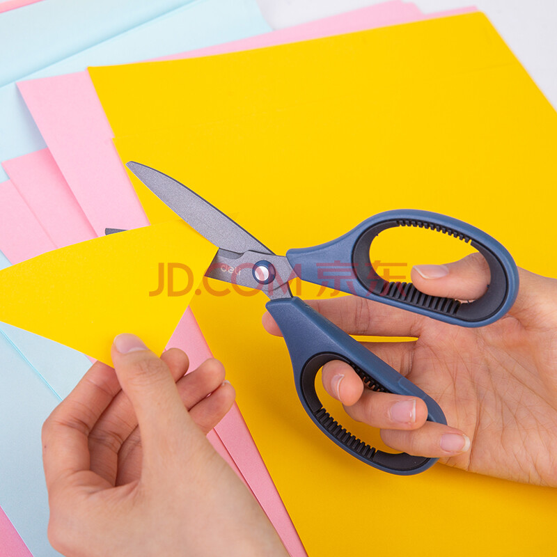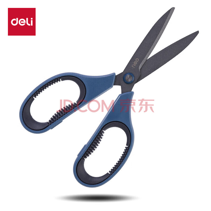 商品相册:得力(deli)特氟龙防粘防锈办公居家剪刀 弧形剪片省力剪子 蓝色77754第