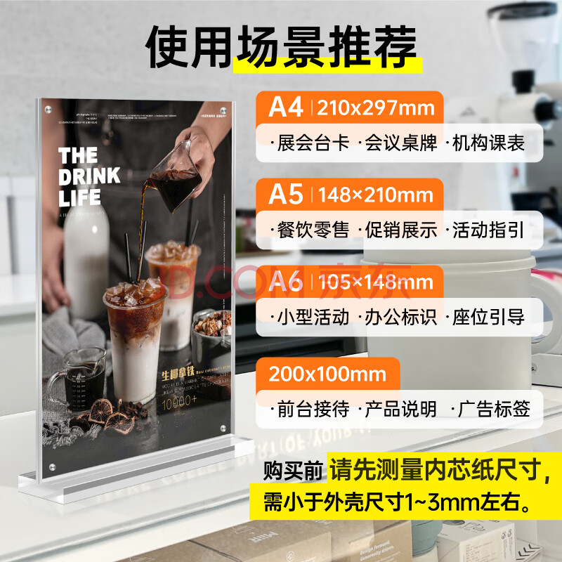 商品相册:DSB迪士比桌牌席卡亚克力T型台卡台签会议牌座位牌广告立牌二维码价格展示牌展示架A4台牌竖款7013第