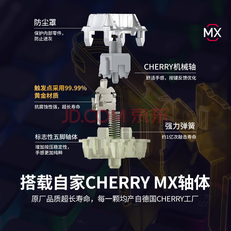商品相册:CHERRY樱桃MX3.0S机械键盘 游戏电竞键盘 有线办公电脑键盘108键 侧刻键帽 合金外壳 黑色青轴第