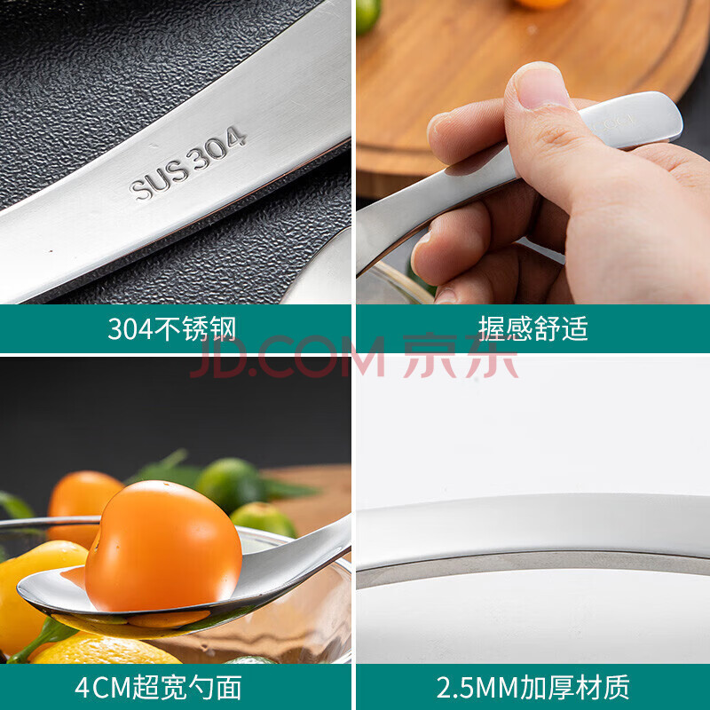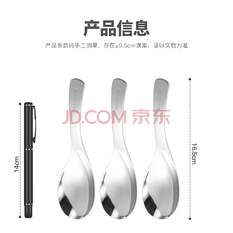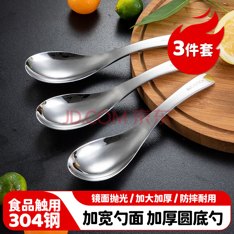 商品相册:美厨(maxcook)304不锈钢汤勺汤匙 加大加厚勺子圆底餐勺饭勺汤勺三件套 MCGC944第