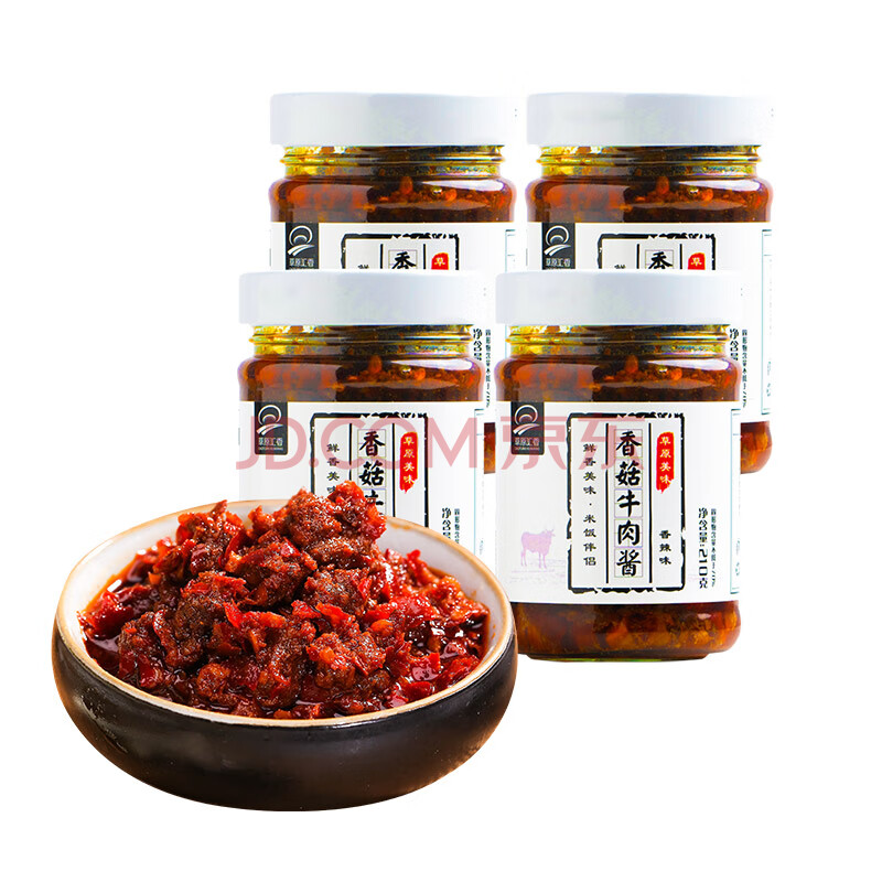 商品相册:草原汇香 香菇牛肉酱下饭酱210克*4瓶拌饭酱调味酱料露营下菜拌饭拌面酱第
