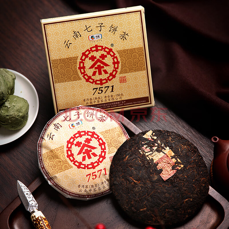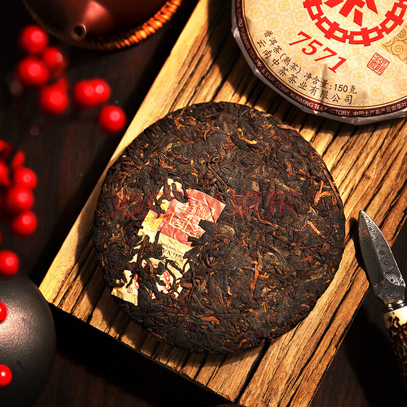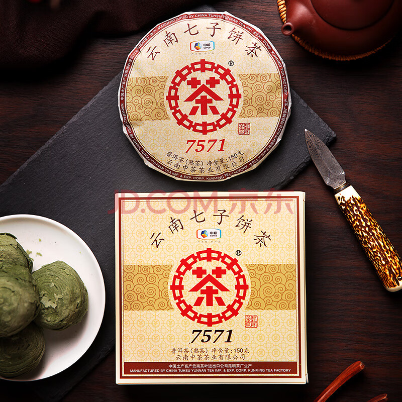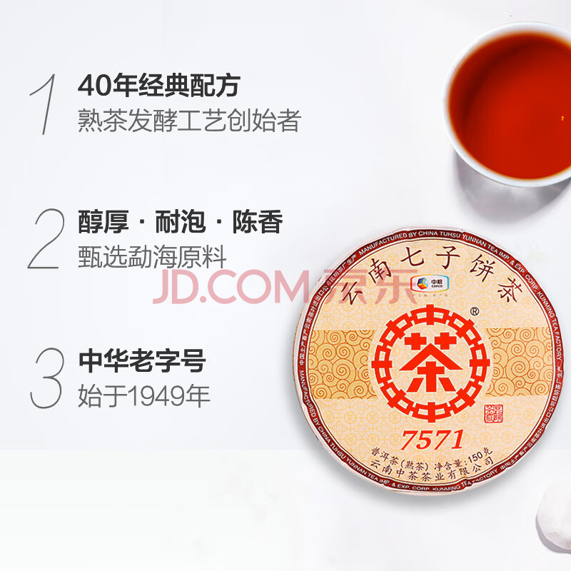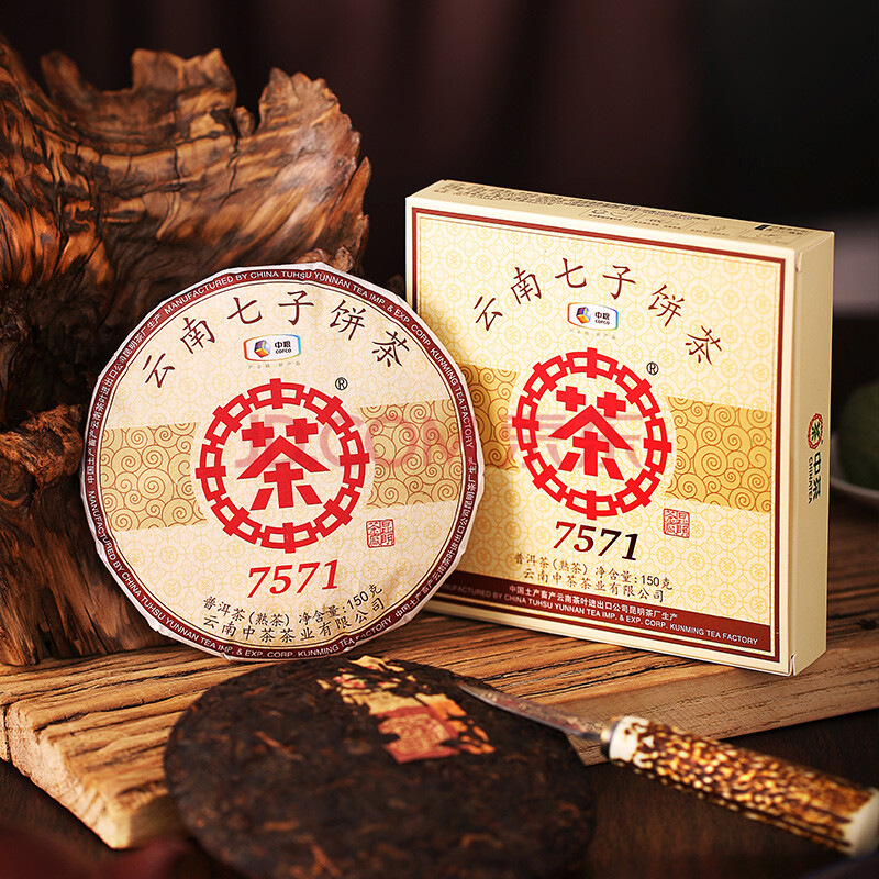 商品相册:中茶普洱茶叶经典7571小饼云南七子饼茶熟普熟茶茶饼茶叶150g口粮茶第
