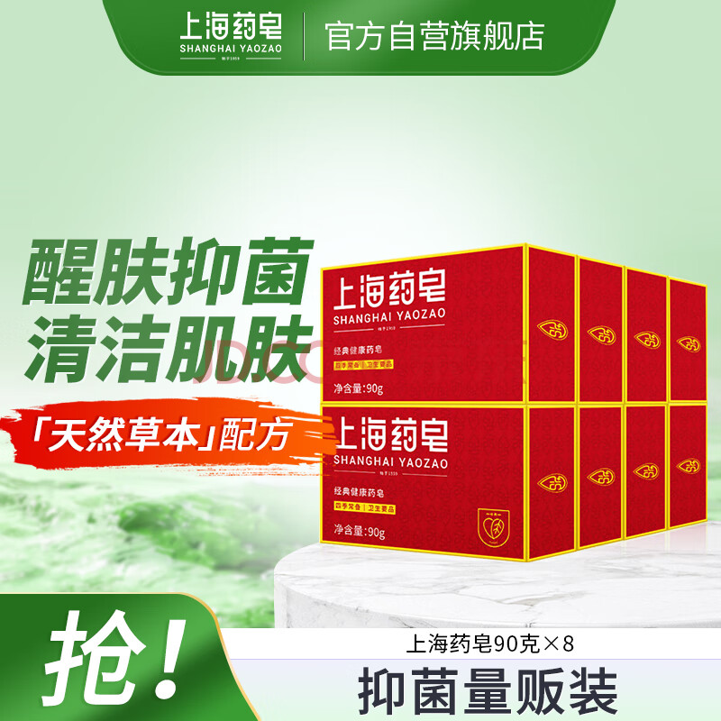 商品相册:上海药皂经典健康香皂90g*8块家庭装洗澡沐浴洗手洗衣服去污清洁肥皂第