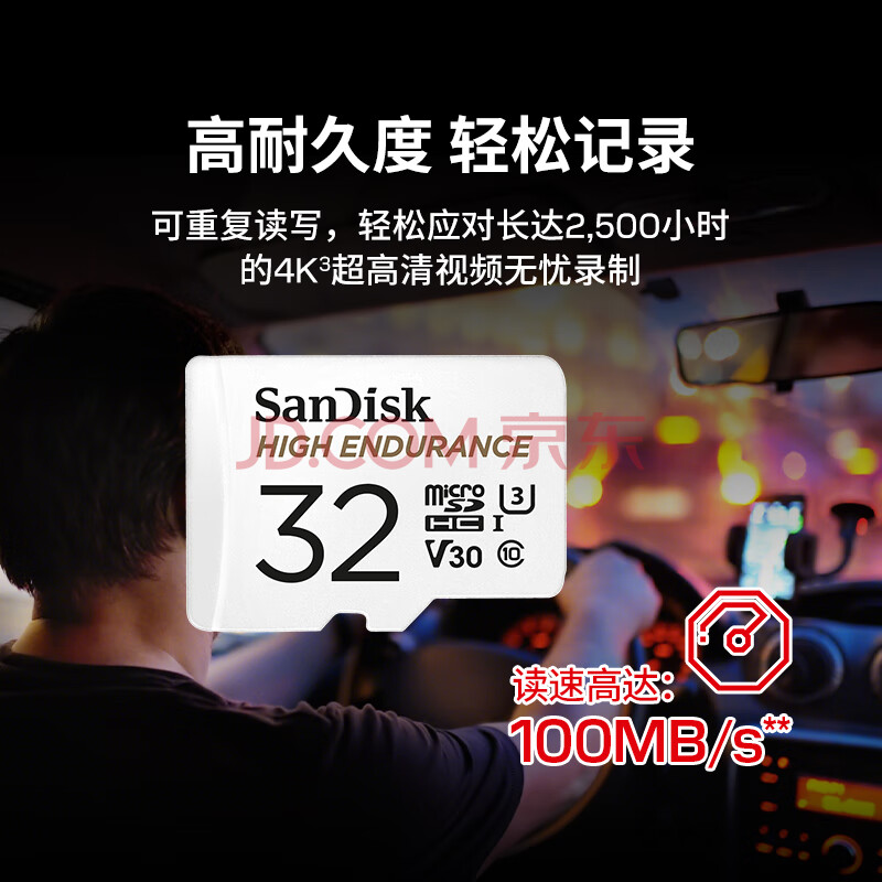 商品相册:闪迪(SanDisk)32GB TF(MicroSD)4K内存卡 行车记录仪 监控摄像头专用 循环录制2,500小时 高耐用存储卡第