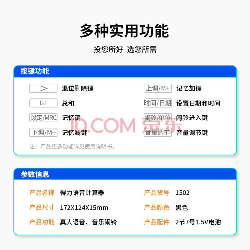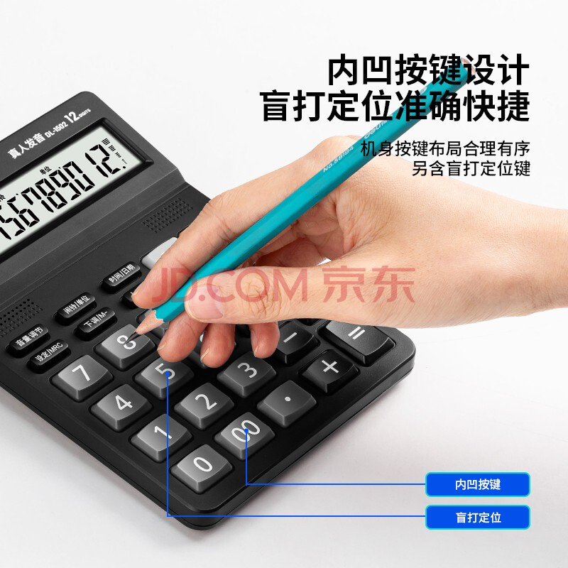 商品相册:得力(deli)12位财务商超通用语音计算机 桌面语音计算器 学生/办公口算 黑色1502第
