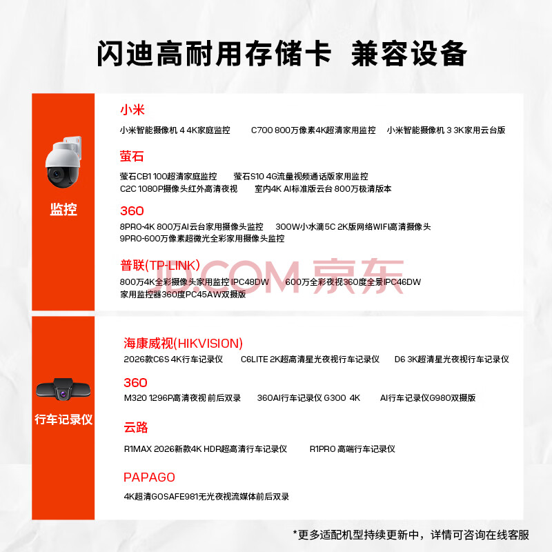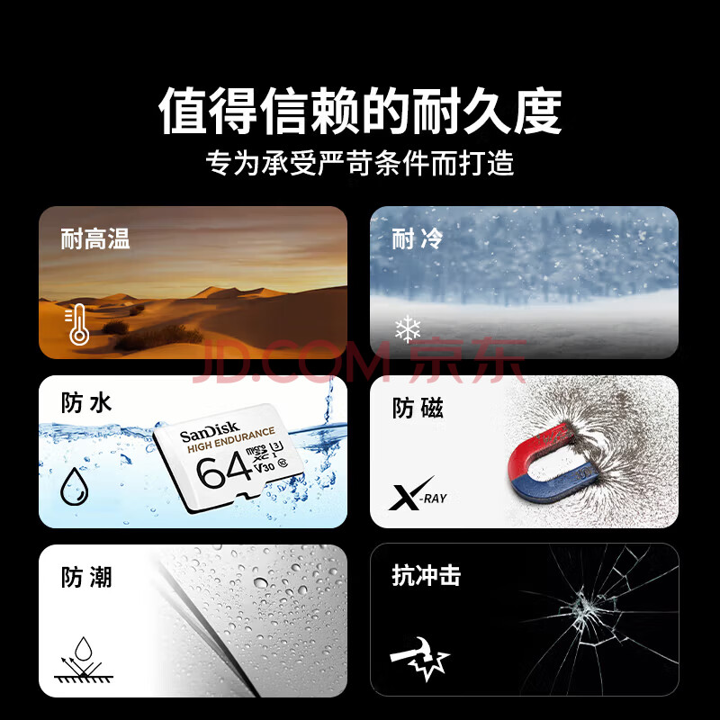 商品相册:闪迪(SanDisk)64GB TF(MicroSD)4K内存卡 行车记录仪 监控摄像头专用 循环录制5,000小时 高耐用存储卡第