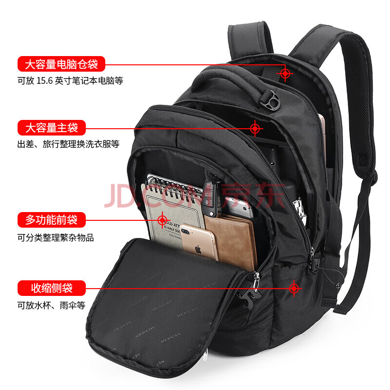商品相册:稻草人双肩包男士旅行背包15.6/16英寸电脑学生书包防泼水出差通勤男包第