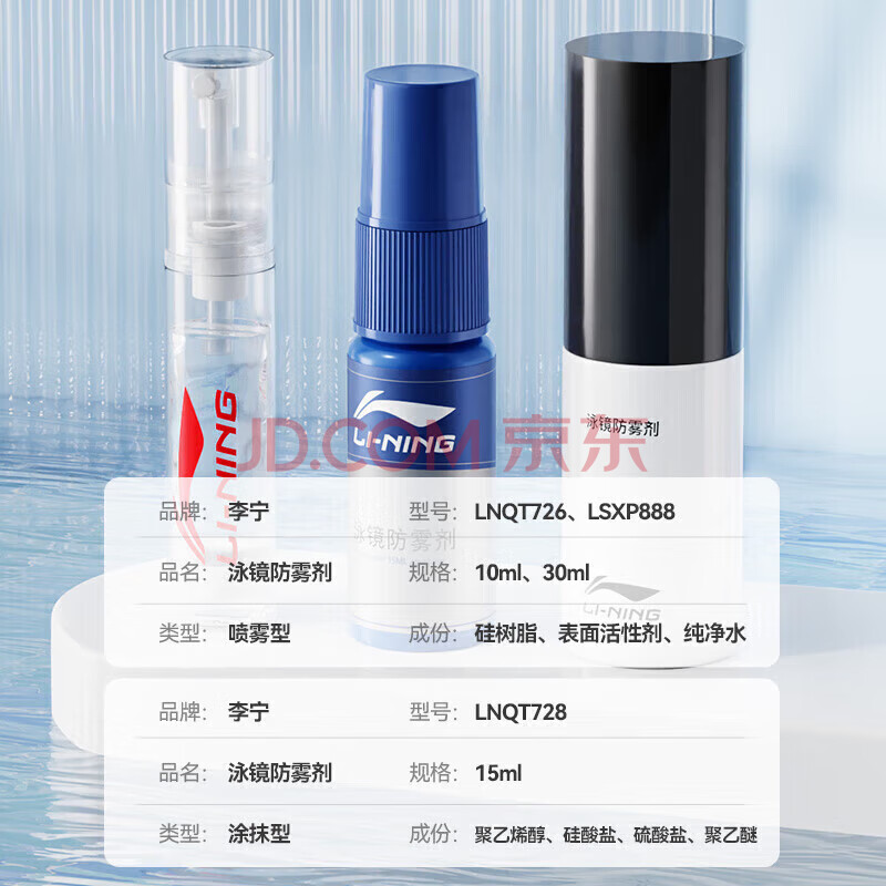 商品相册:李宁(LI-NING)游泳眼镜防雾剂防雾喷剂适用于各种泳镜镜片防雾 LSXP888-1第