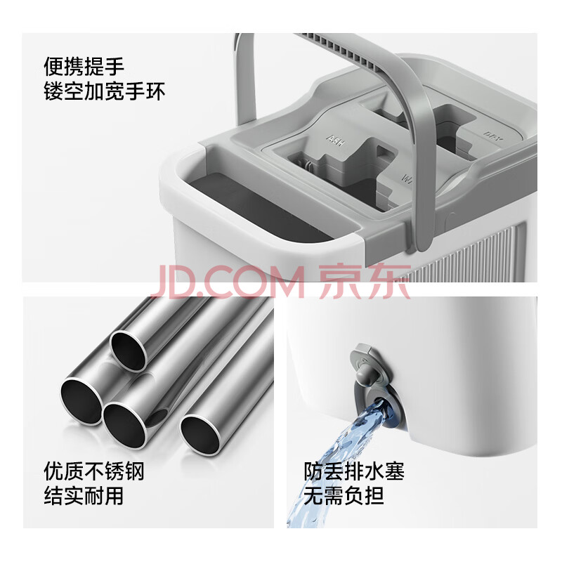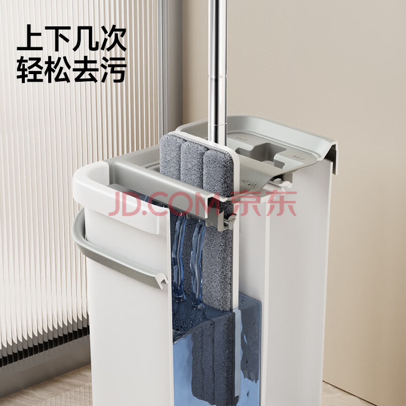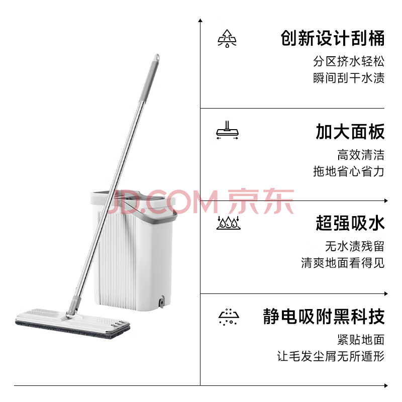 商品相册:五月花平板拖把33CM杆长127CM2配布刮刮桶免手洗家用懒人吸水墩布拖地第