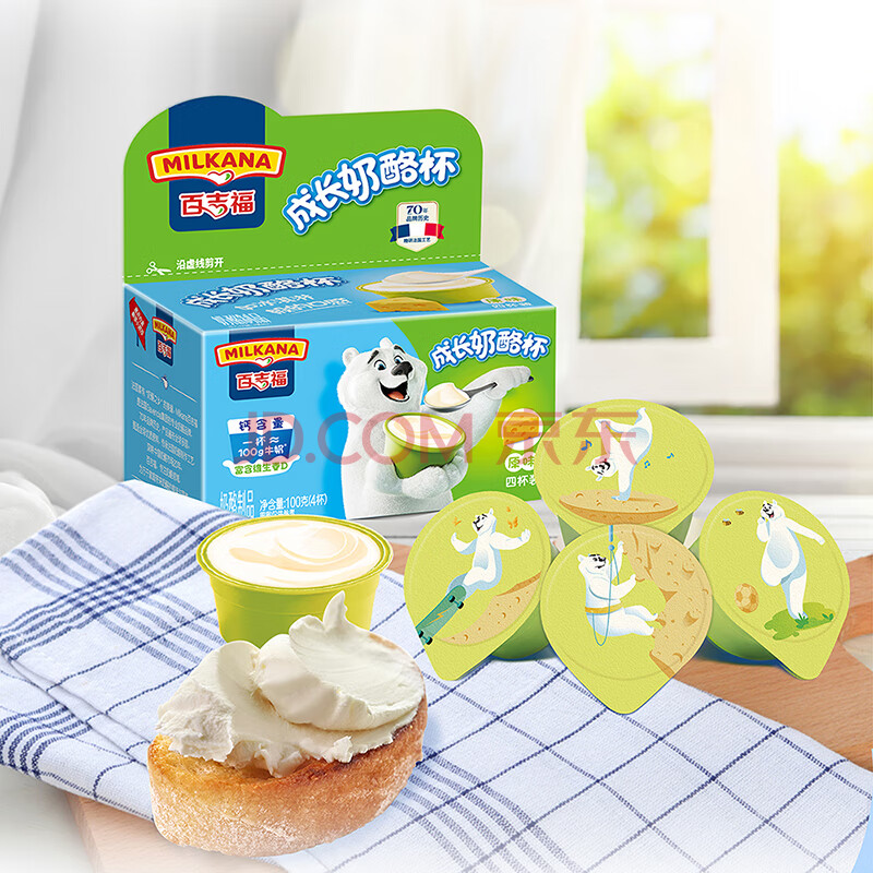 商品相册:百吉福(MILKANA) 儿童成长奶酪杯芝士 混合口味(原味/草莓/蓝莓/香蕉)100g*4盒第
